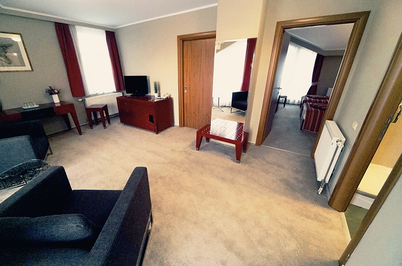 Hotel dispune de 4 apartamente, fiecare fiind compus din două camere separate, una cu pat matrimonial și una cu pat dublu.